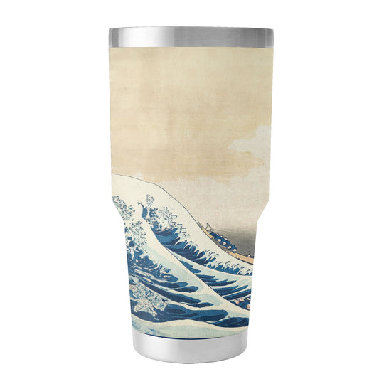 Gobelet isotherme en acier inoxydable avec couvercle, imprimé personnalisé Ukiyo-e, La Grande Vague de Kanagawa de Katsushika Hokusai, Pr263