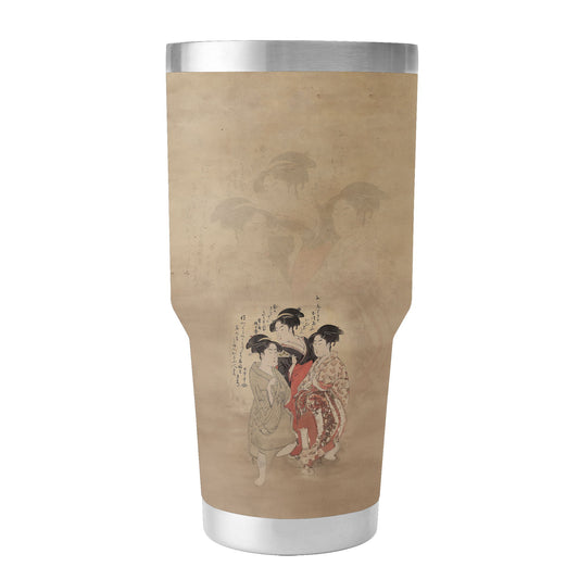 Gobelet isotherme en acier inoxydable avec couvercle, imprimé sur mesure, représentant les trois beautés actuelles de Kitagawa Utamaro, 30 oz, Pr263