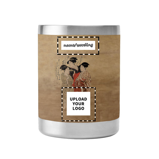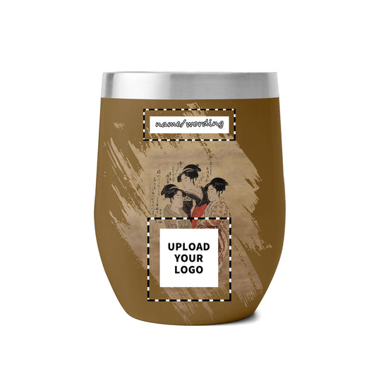 カスタムプリント 12オンス ステンレススチール ワインタンブラー Pr260: 浮世絵 喜多川歌麿の現代三美人 蓋付き断熱エッグシェルカップ