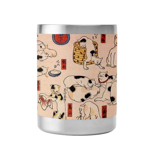 カスタムプリント 10 オンス ステンレススチール コーヒーカップ 蓋付き Pr262: 浮世絵 歌川国芳の猫が東海道五十三次の候補として提案されたウイスキータンブラー