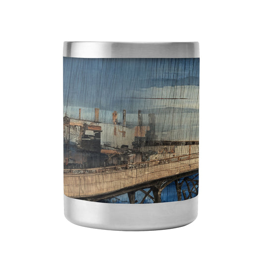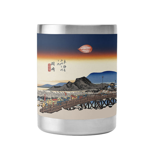カスタムプリント 10オンス ステンレススチール コーヒーカップ 蓋付き Pr262: 浮世絵 歌川広重の東海道五十三次 岡崎矢作橋の橋 ウイスキータンブラー