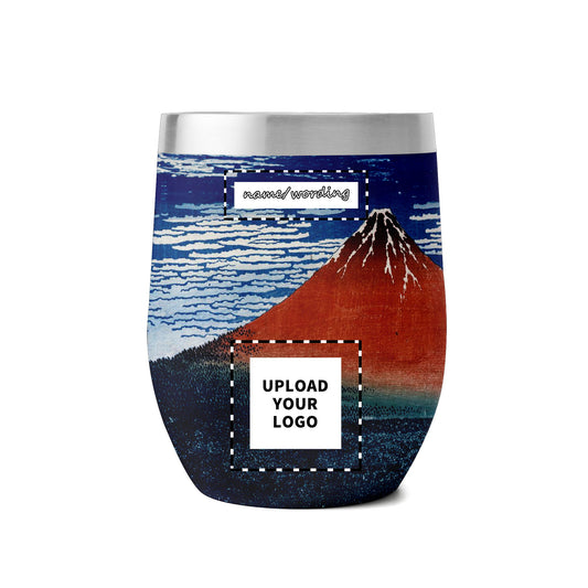 カスタムプリント 12オンス ステンレススチール ワインタンブラー Pr260: 浮世絵 北斎の赤富士三十六景 蓋付き断熱エッグシェルカップ