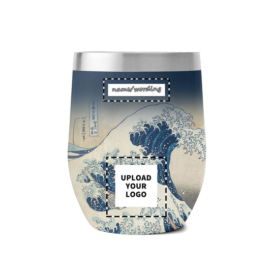 カスタムプリント 12オンス ステンレススチール ワインタンブラー Pr260: 浮世絵 葛飾北斎の神奈川沖浪裏 断熱エッグシェルカップ 蓋付き