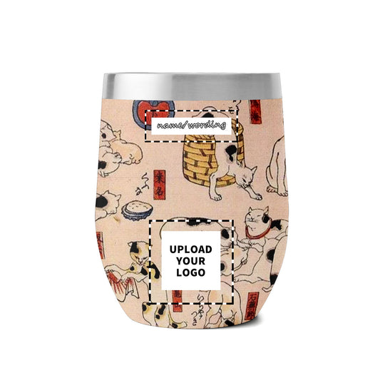 カスタムプリント 12 オンス ステンレススチール ワインタンブラー Pr260: 浮世絵 歌川国芳の猫が東海道五十三次の候補として提案 蓋付き断熱エッグシェルカップ