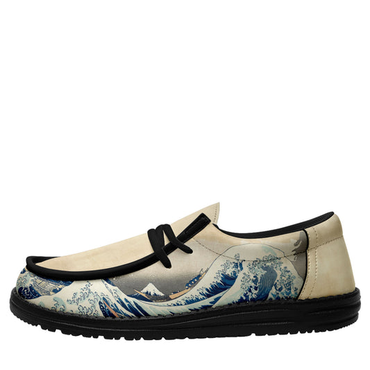 カスタマイズプリントYo Broシューズ2202:浮世絵葛飾北斎の神奈川沖浪裏カジュアルシューズブラック靴ひも