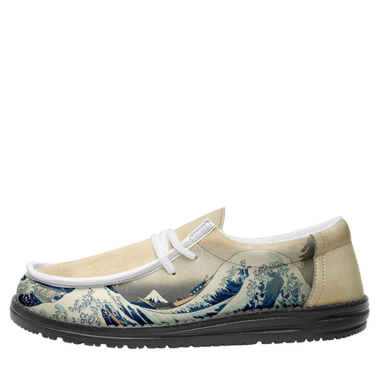 カスタマイズプリントYo Broシューズ2202:浮世絵葛飾北斎の神奈川沖浪裏カジュアルシューズホワイトシューレース
