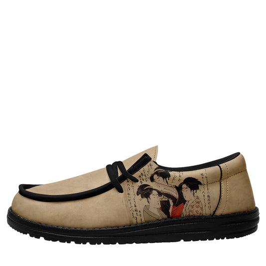 カスタマイズプリントYo Broシューズ2202:浮世絵喜多川歌麿の現代三美人カジュアルシューズブラック靴ひも