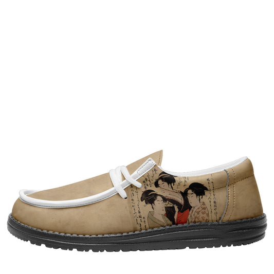 カスタマイズプリントYo Broシューズ2202:喜多川歌麿の現代三美人カジュアルシューズホワイトシューレース