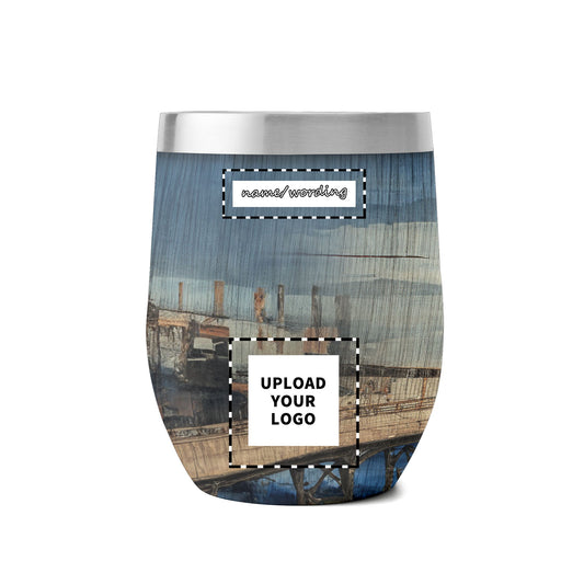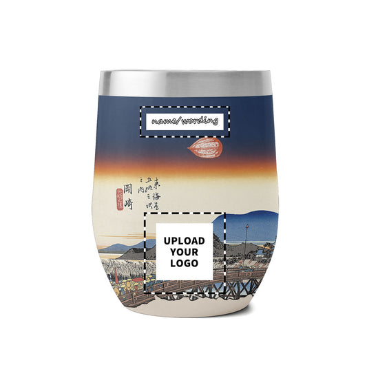 カスタムプリント 12オンス ステンレススチール ワインタンブラー Pr260: 浮世絵 東海道五十三次 岡崎矢作の橋 断熱エッグシェルカップ 蓋付き