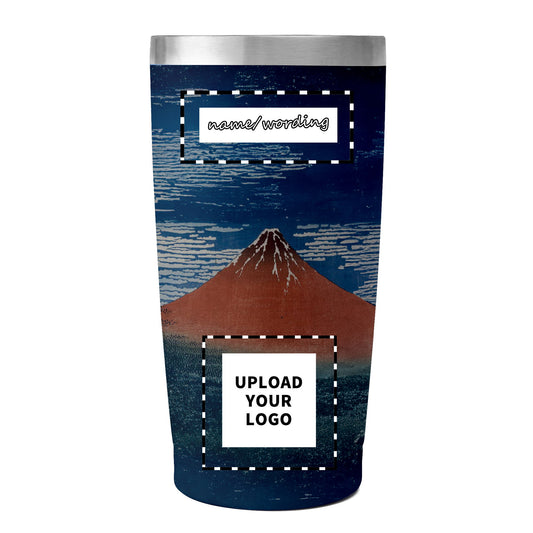 カスタムプリント 20 オンス ステンレススチール トラベルマグ 蓋付き Pr259: 浮世絵 北斎の赤富士三十六景 真空断熱コーヒータンブラー