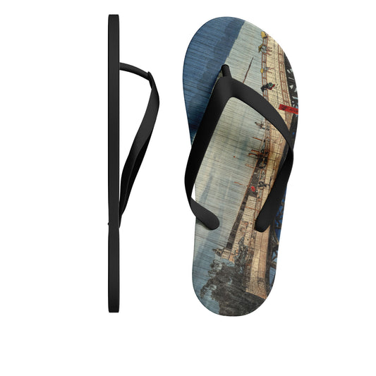 カスタムプリントスリッパ 1916年:浮世絵歌川広重の東海道五十三次岡崎矢作橋の橋ビーチサンダル