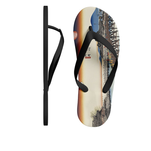 カスタムプリントスリッパ 1916年:浮世絵歌川広重の「新大橋の夕立」と「あたけのビーチサンダル」
