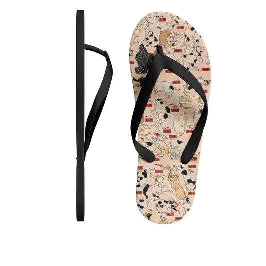 カスタムプリントスリッパ 1916年:浮世絵歌川国芳の猫が東海道五十三次の候補として提案されたビーチサンダル