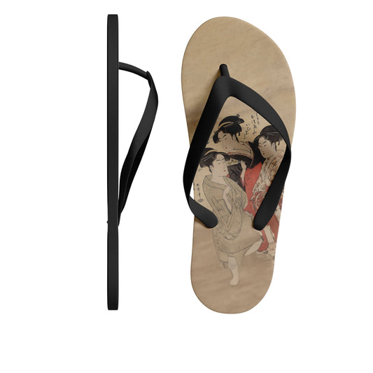 特注プリントスリッパ 1916年:浮世絵喜多川歌麿の現代三美人 ビーチサンダル