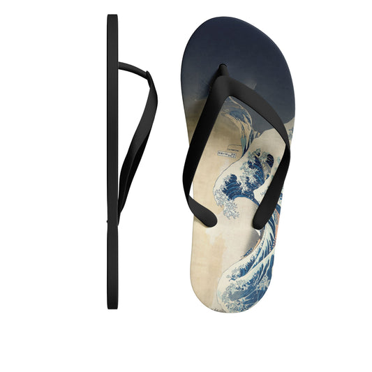 カスタムプリントスリッパ 1916年: 浮世絵 葛飾北斎の神奈川沖浪裏 ビーチサンダル