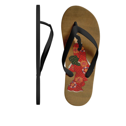 カスタムプリントスリッパ 1916年:浮世絵菱川師宣の美人画を振り返るビーチサンダル