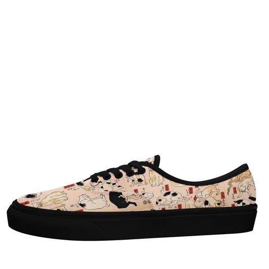 カスタムプリントカジュアルシューズ7213:浮世絵歌川国芳の東海道五十三次の猫スニーカーブラックソール