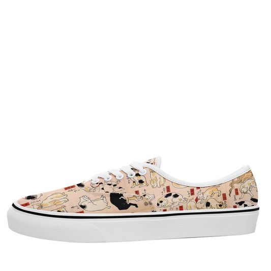 カスタムプリントカジュアルシューズ7213:浮世絵歌川国芳の東海道五十三次の猫スニーカーホワイトソール