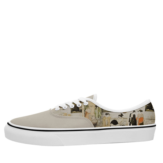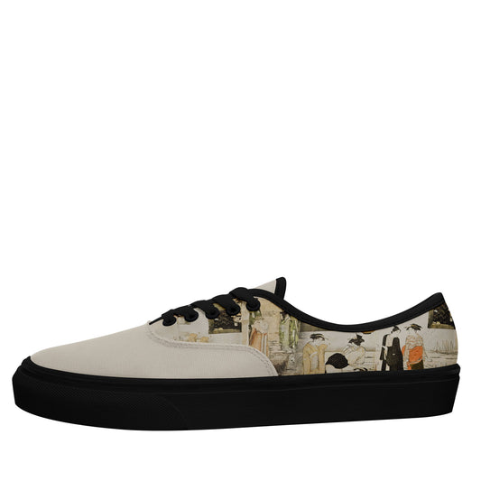 カスタムプリントカジュアルシューズ7213:浮世絵喜多川歌麿の現代三美人スニーカーブラックソール