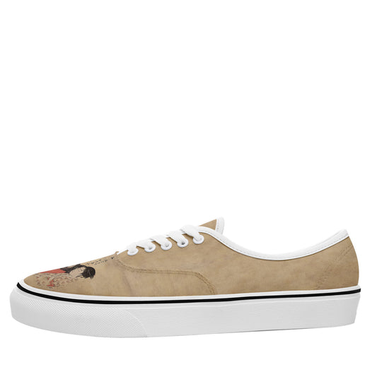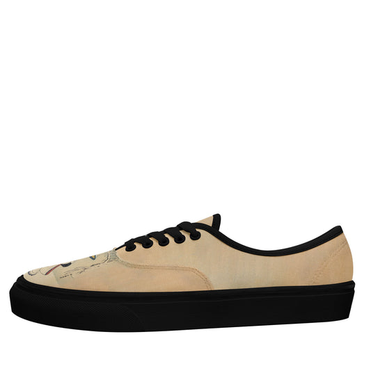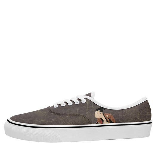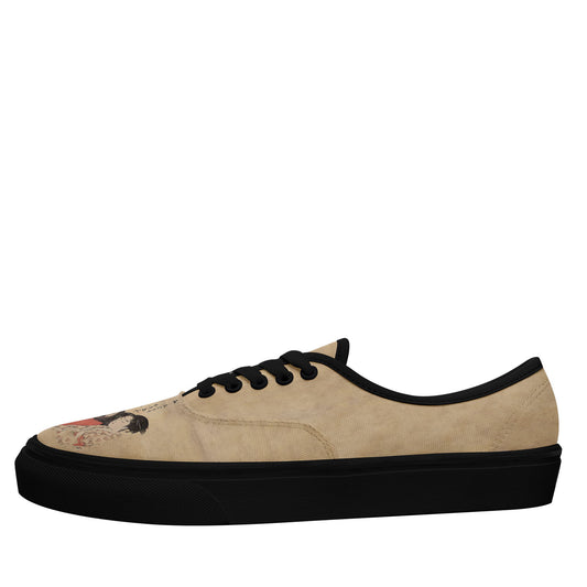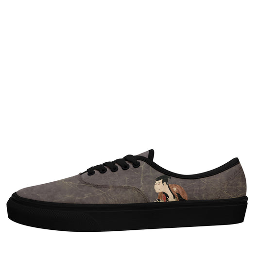 カスタムプリントカジュアルシューズ7213:浮世絵菱川師宣の美人振り返りスニーカーブラックソール