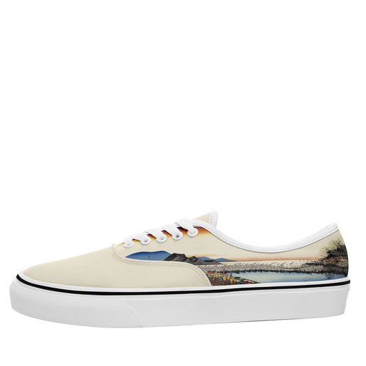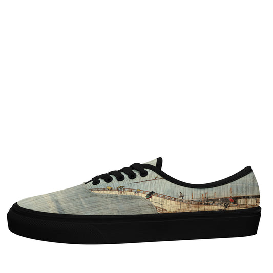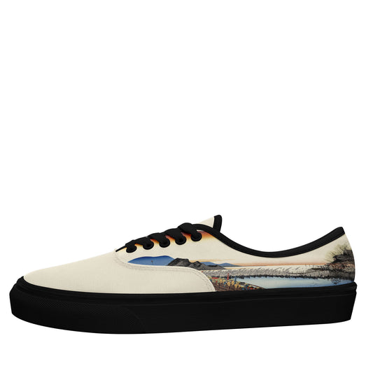 カスタムプリントカジュアルシューズ 7213: 浮世絵 歌川広重の東海道五十三次 岡崎矢作橋の橋スニーカー ブラックソール