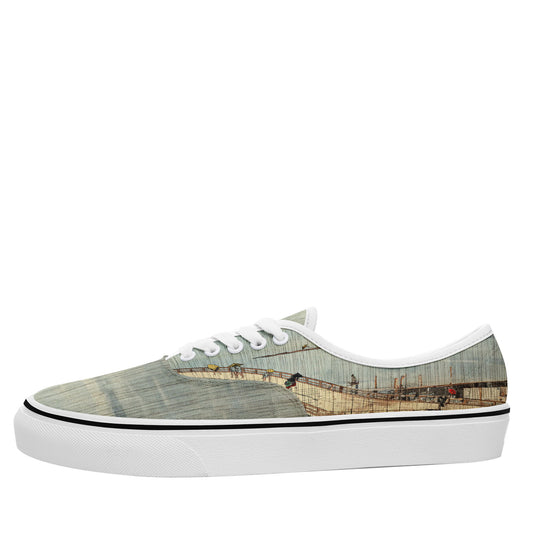 カスタムプリントカジュアルシューズ 7213: 浮世絵歌川広重の「新大橋の夕立とあたけの図」スニーカー ブラックソール