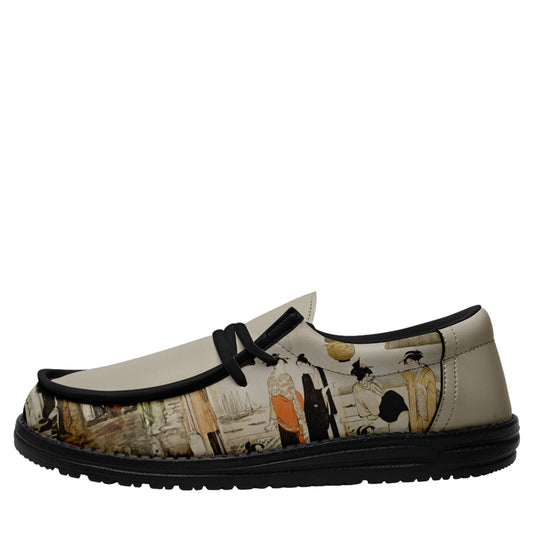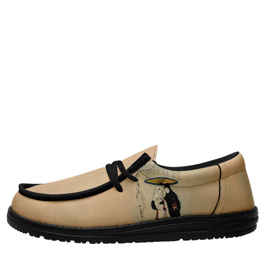 カスタマイズプリントYo Broシューズ2202:菱川師宣による振り返る浮世絵美人カジュアルシューズブラックシューレース