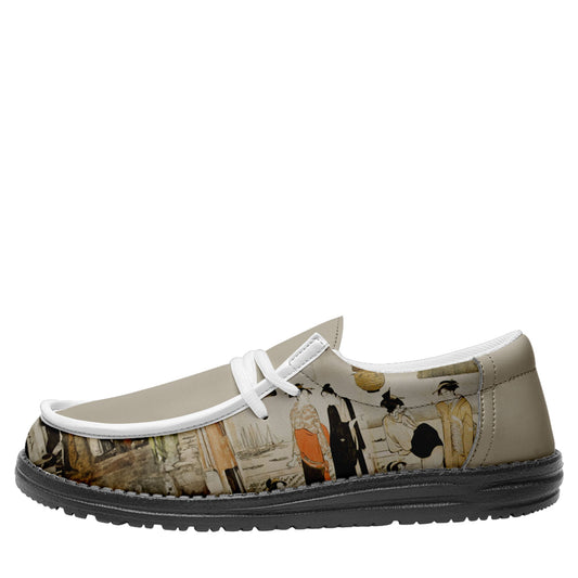 カスタマイズプリントYo Broシューズ2202:浮世絵六月茶屋の夕涼みカジュアルシューズ黒靴紐