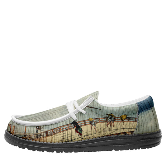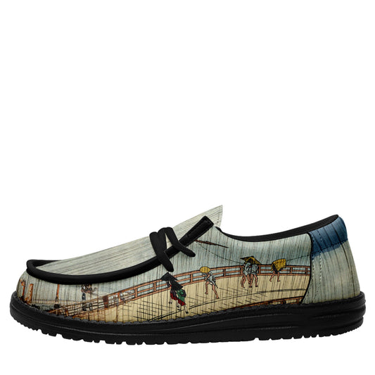 カスタマイズプリントYo Broシューズ2202:浮世絵歌川広重の雨模様新大橋とあたけカジュアルシューズ黒靴ひも