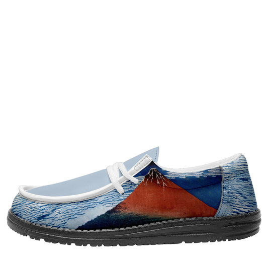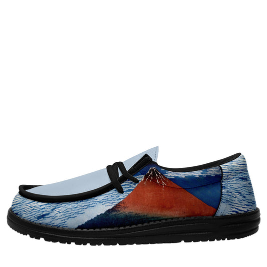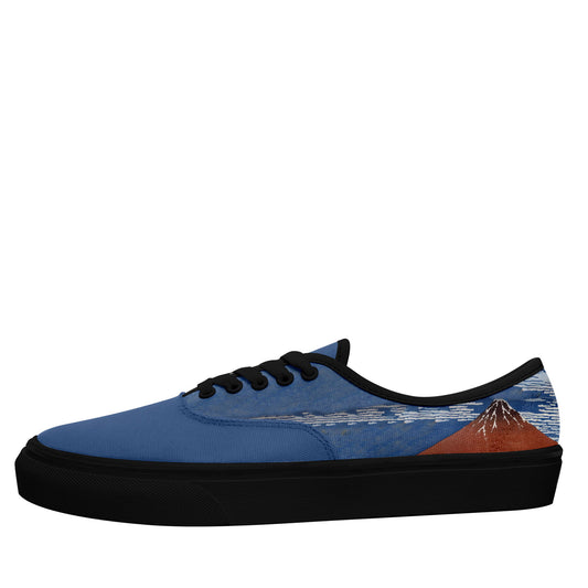カスタムプリントカジュアルシューズ 7213: 浮世絵 北斎の赤富士三十六景 スニーカー ブラックソール