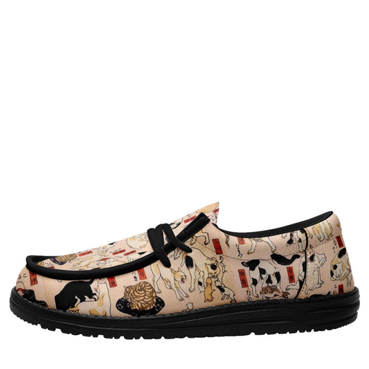 カスタマイズプリントYo Broシューズ2202:浮世絵歌川国芳の猫が東海道五十三次の候補として提案されたカジュアルシューズブラック靴ひも