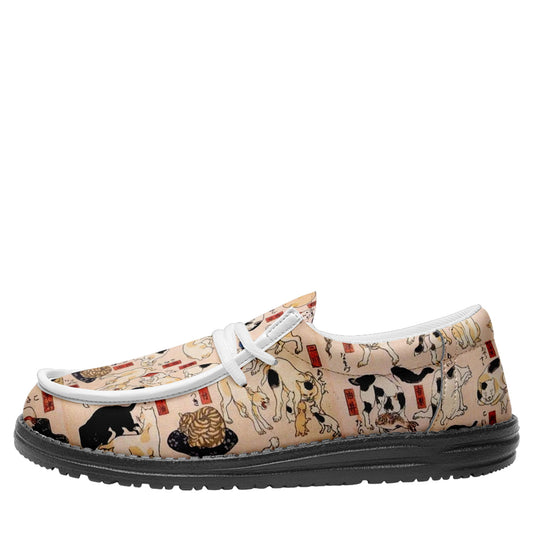 カスタマイズプリントYo Broシューズ2202:浮世絵歌川国芳の猫が東海道五十三次の候補として提案されたカジュアルシューズ白い靴ひも