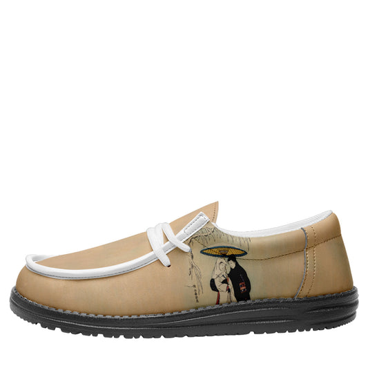 カスタマイズプリントYo Broシューズ2202浮世絵鈴木春信の雪中傘の下のカップルカジュアルシューズホワイト靴ひも