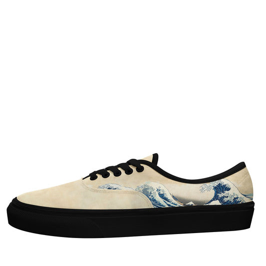 カスタムプリントカジュアルシューズ 7213: 浮世絵 葛飾北斎の神奈川沖浪裏 スニーカー ブラックソール