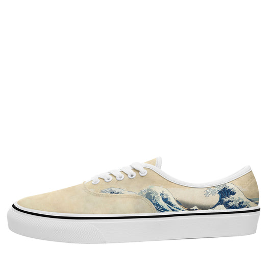 カスタムプリントカジュアルシューズ 7213: 浮世絵 葛飾北斎の神奈川沖浪裏 スニーカー ホワイトソール