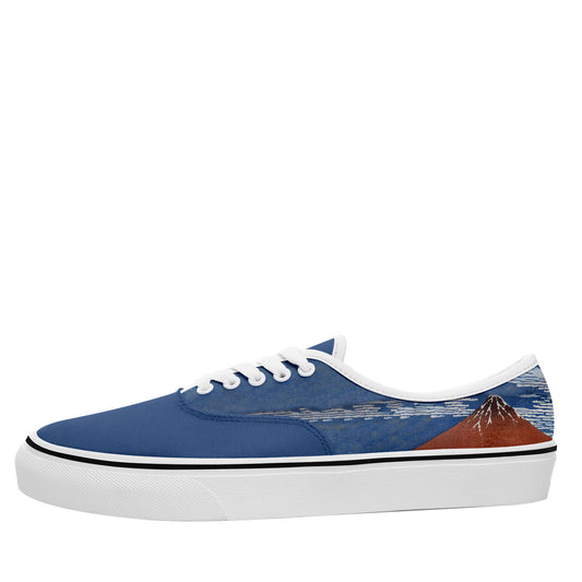 カスタマイズプリントYo Broシューズ2202:浮世絵北斎の赤富士三十六景カジュアルシューズホワイト靴ひも
