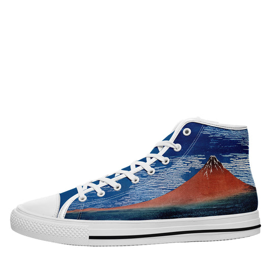 カスタムプリント浮世絵ハイカジュアルシューズ7218:北斎の赤富士三十六景スニーカー