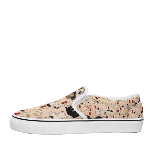 特注浮世絵カジュアルシューズ7216:歌川国芳の東海道五十三次の猫スニーカーホワイトソール