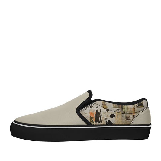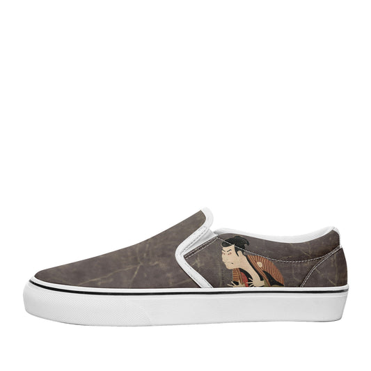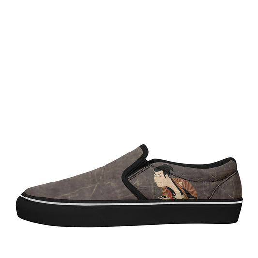 カスタムプリント浮世絵カジュアルシューズ7216:大谷鬼次の奴隷江戸兵三代スニーカーブラックソール