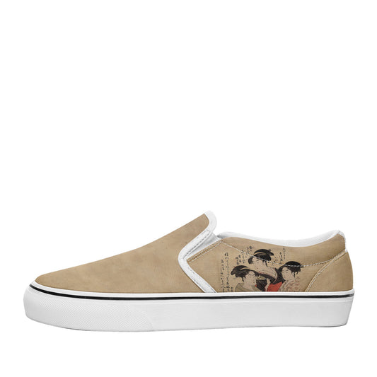 カスタムプリント浮世絵カジュアルシューズ7216:菱川師宣の振り返る美人スニーカーホワイトソール